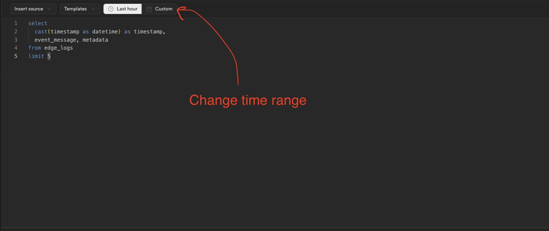 Ensure you have access to the Dashboard's Log Explorer and set the time range appropriately:
